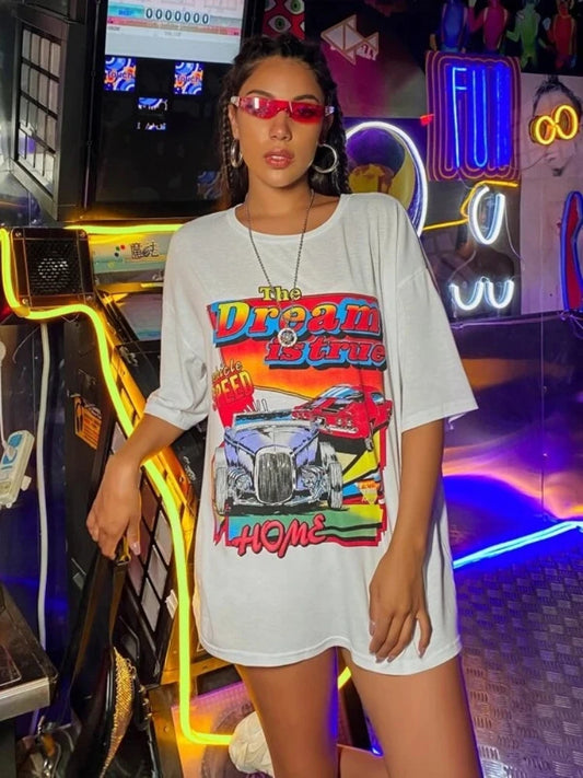 Cute Vintage DreamCar Print T-Shirt Casual Harajuku Women’s Tee