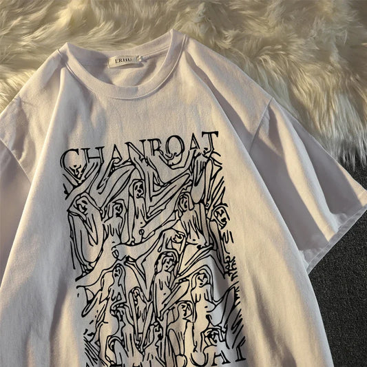 Funny Ghost Print T-Shirt Women Y2K Harajuku Grunge Streetwear Top