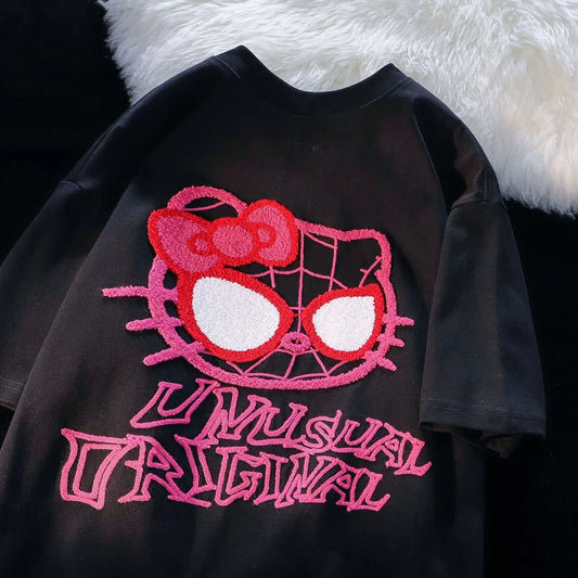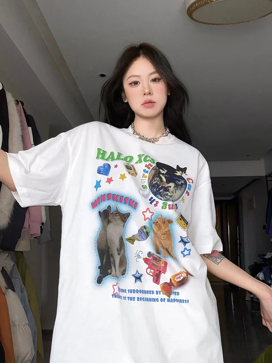 Planet Cat Harajuku T-Shirt Loose Gothic Y2K Tee for Women