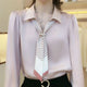 Black White Contrast V Neck Chiffon Blouse Work Top
