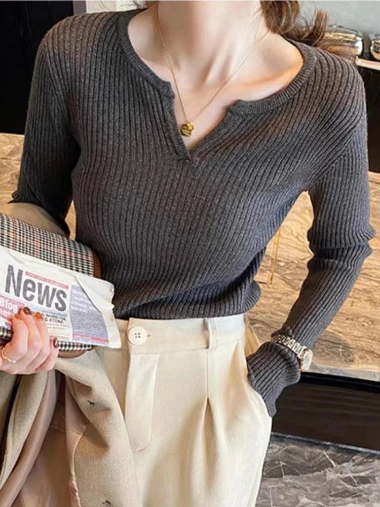 V Neck Sweater Women Knit Pullover Fall Winter Solid Color Top