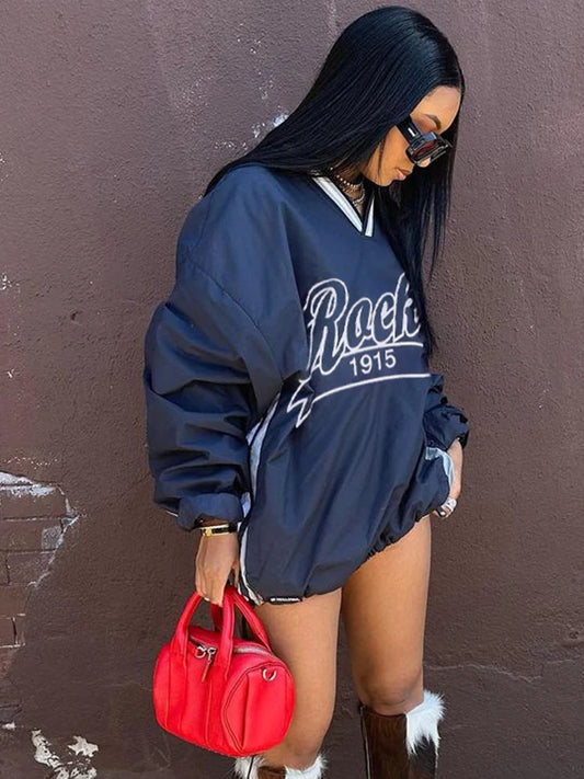 Edgy Letter Print V-Neck Pullover – Women’s Streetwear Tee