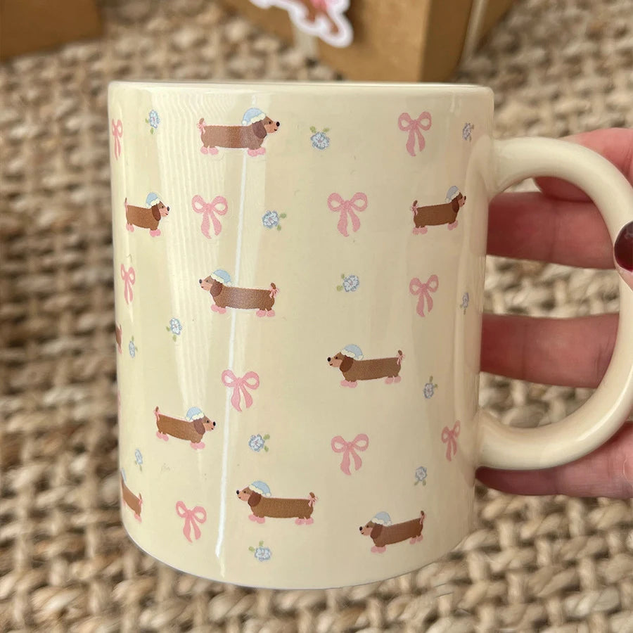 340ml Korean Style Cute Dachshund Pattern Ceramic Mug With Handle