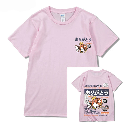2024 Japanese Fun Ramen Fish Print Cotton Hip Hop T-shirt
