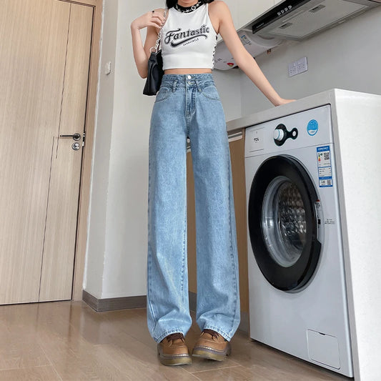 2024 High-Waist Wide-Leg Jeans Koreanische Y2K Frühlingsmode