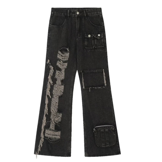 2024 Hip Hop Punk Patchwork Ripped Rock Goth Y2k Breite Bein Länge Denim