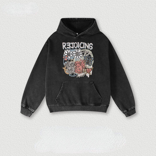 2024 Loose American Retro gewaschenes bedrucktes Kapuzensweatshirt