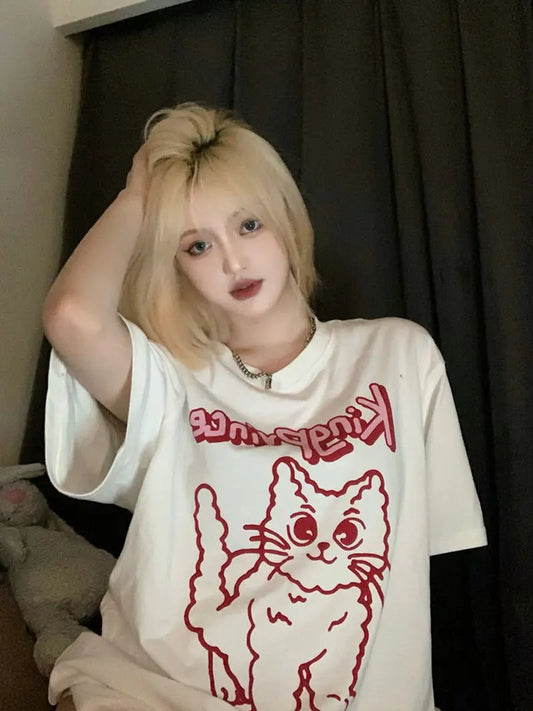 2024 Übergroßes lässiges Gothic-T-Shirt mit Aufdruck