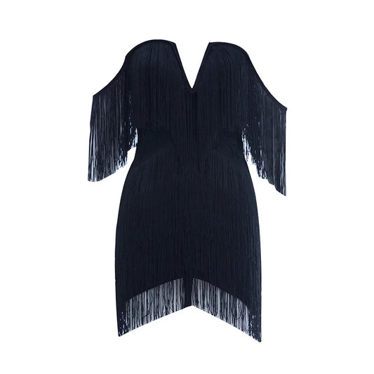 2024 Neue Damenmode: Sexy V-Ausschnitt, schulterfrei, figurbetontes Kleid mit Quaste für Nachtclubs und Partys