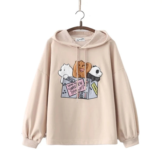 2023 Herbst-Katzen-gestickter Kapuzenpullover: Koreanische Streetwear-Oberteile
