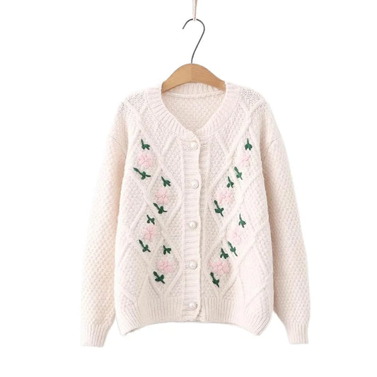 2023 Herbst-Damen-Cardigan mit Blumenstickerei: Schicker Pullover mit V-Ausschnitt