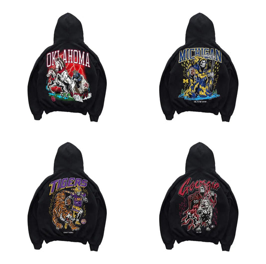 Y2k Gothic HipHop Muster Druck Hoodies Retro Mode Warren Schädel Herren Hoodie
