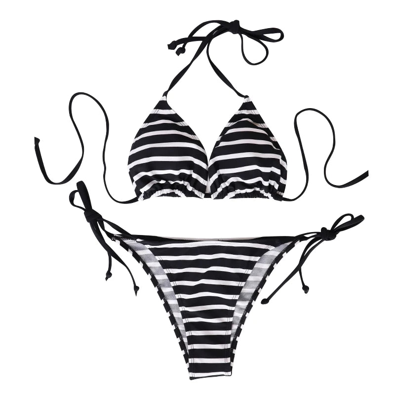Womens Striped Bikini Set Triangle Top Tie Side Two Piece Swimsuit