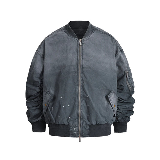 Vintage Washed Bomber Jacket Men Winter Oversized