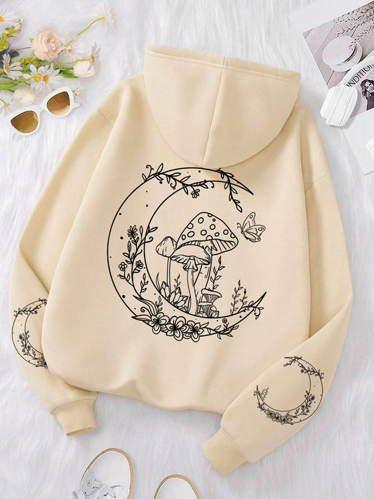 Mushrooms on the Moon Hoodie Men Funny Graphic Fleece