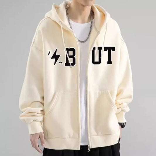 Men's Cotton Zipper Letter Print But Hoodie Oversized Streetwear