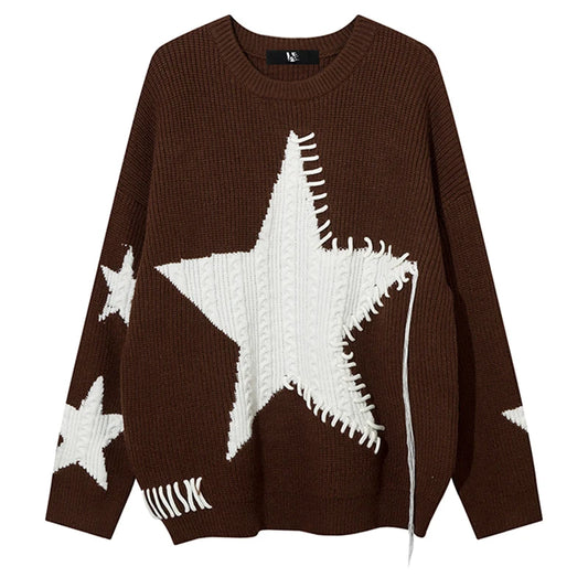 Men Big Star Sweater Loose Pullover Streetwear Tops