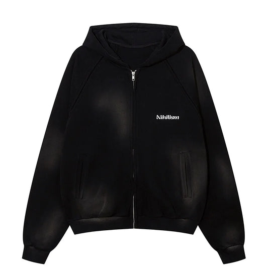 Men Skull Print Gothic Zip Hoodie Oversize Streetwear