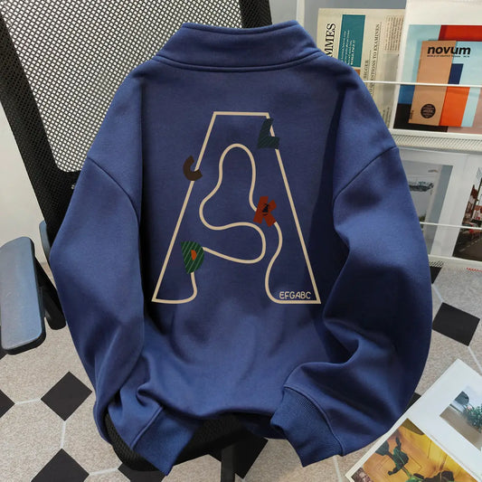 Men's American High Street Retro Half-Zip Polo Shirt Autumn Winter
