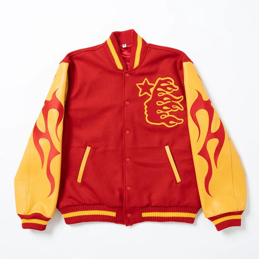 Hellstar Streetwear Hip Hop Retro Print Übergroße Herren Baseballjacke