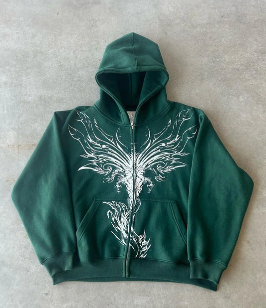 Männer Hoodies Bedrucktes Muster Reißverschluss Streetwear Punk