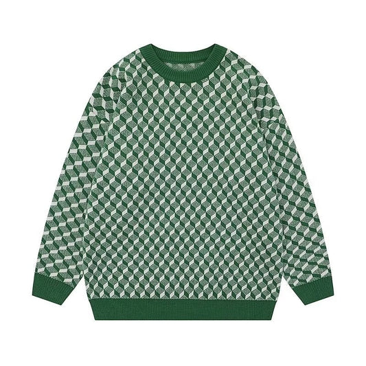 Eleganter Retro-Strick-Plaid-Winterpullover, warmer O-Ausschnitt-Pullover für den lässigen Herrenstil