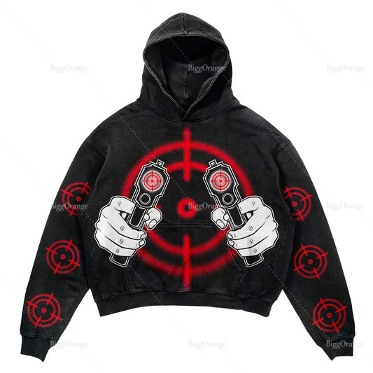 Übergroßer Hoodie mit Waffenelement-Aufdruck für Männer, lockere Passform,