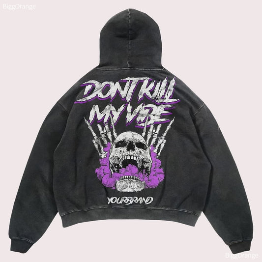 Harajuku Skull Print Hoodies Retro Streetwear für Herren