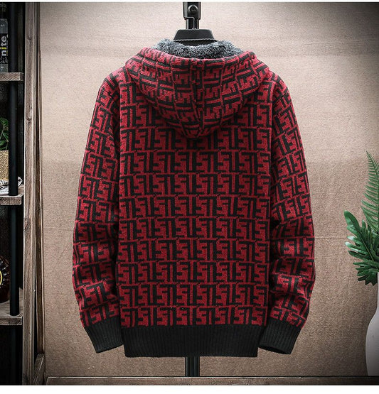 Strickjacke mit Kapuze, lose Taschen, Plüsch, verdickte Hoodies, Reißverschluss