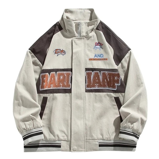 Retro-Unijacke für Herren, Vintage-Briefdruck, Baseball-Patchwork