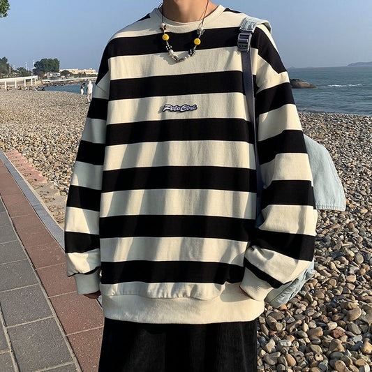 Herren-Sweatshirts, gestreift, koreanischer Stil, modische Pullover