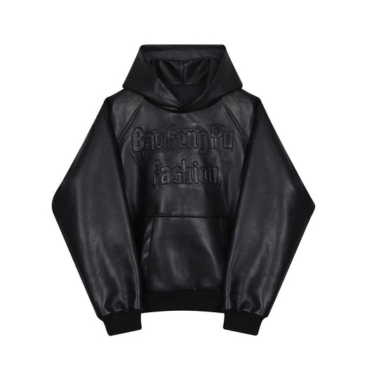 Streetwear Herren Casual Pullover Leder Kapuzenpullover Einfarbig