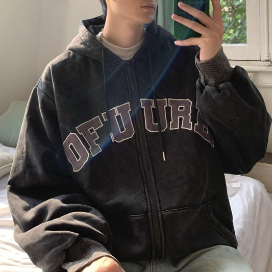 Kapuzenpullover, Sweatshirt, Reißverschluss, Mantel, Aufdruck, langärmlig, mit Kapuze