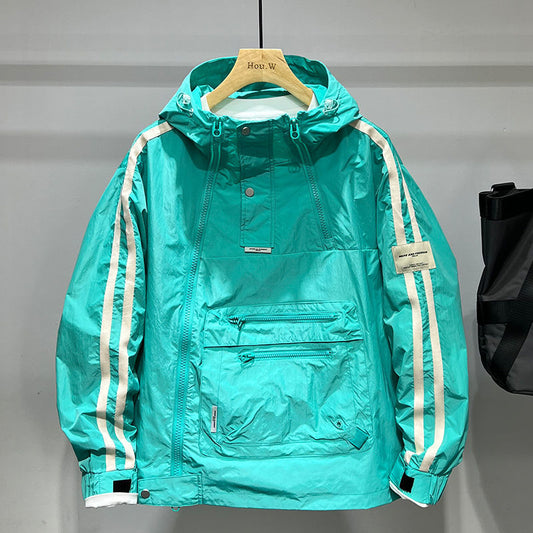 Kapuzenpullover, Sweatshirts, Stehkragen, Maske, winddicht, dunkelschwarze Cargo-Tops