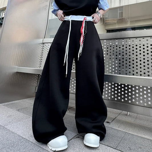 Men's Wide Leg Sweatpants Korean Style Contrast Ribbon