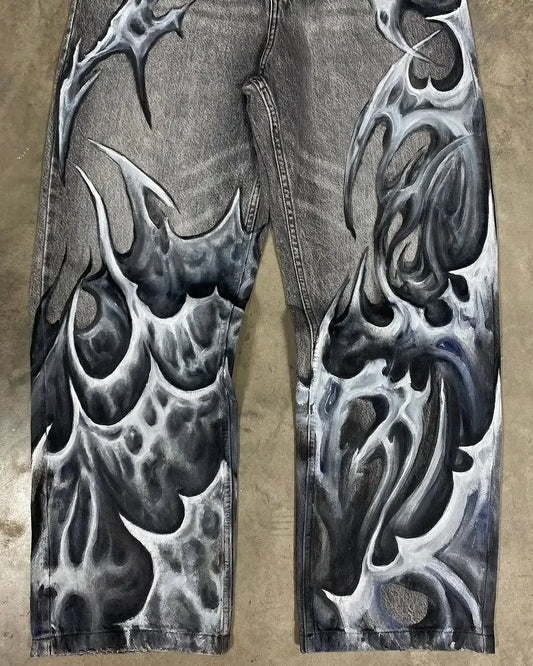 Harajuku Y2K Oversized Jeans Gothic Bat Print Street Pants for Men