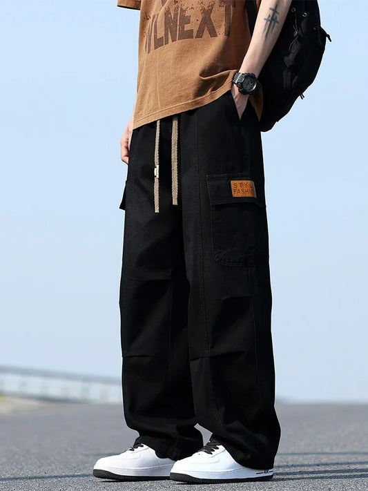 Summer Street Style Cargo Jeans Men’s Wide-Leg Washed Denim Pants