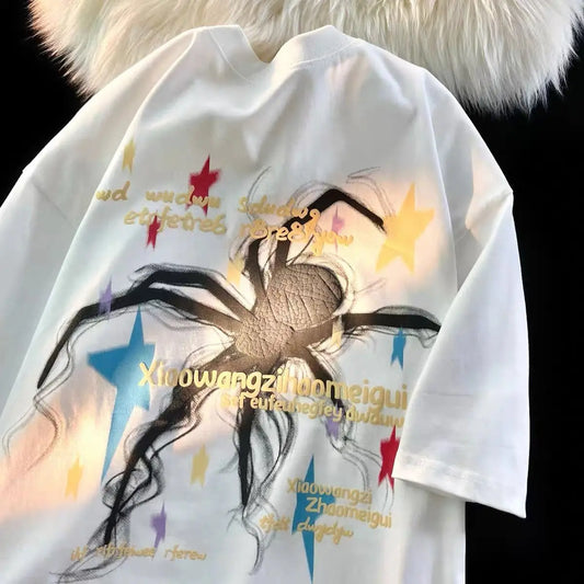 Trendy Spider Personalisierter Druck s\Kurzarm Lose Vintage T-Shirt Top Harajuku