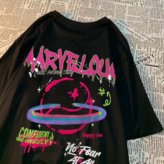 Amerikanisches Street-Hip-Hop-T-Shirt im Retro-Look mit lockerer Passform