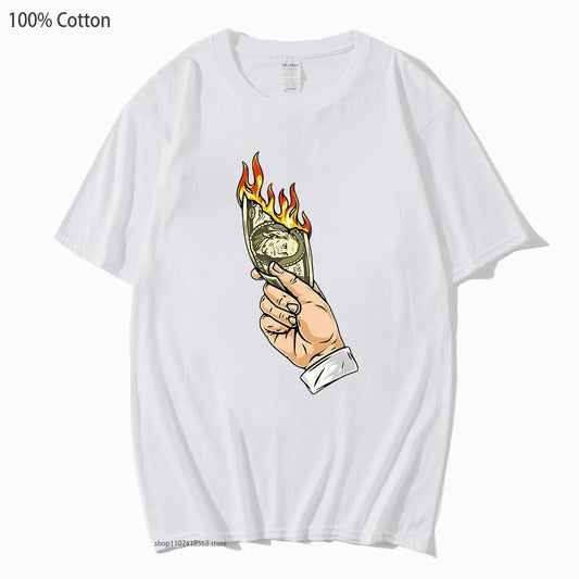 Dollar on Fire Graphic Tees Sommer Streetwear Männer Lustig und Casual