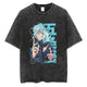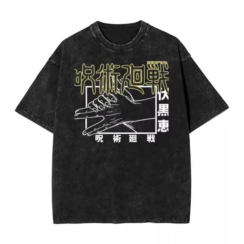 Dunkles Anime-T-Shirt im Distressed-Design mit Handbewegung