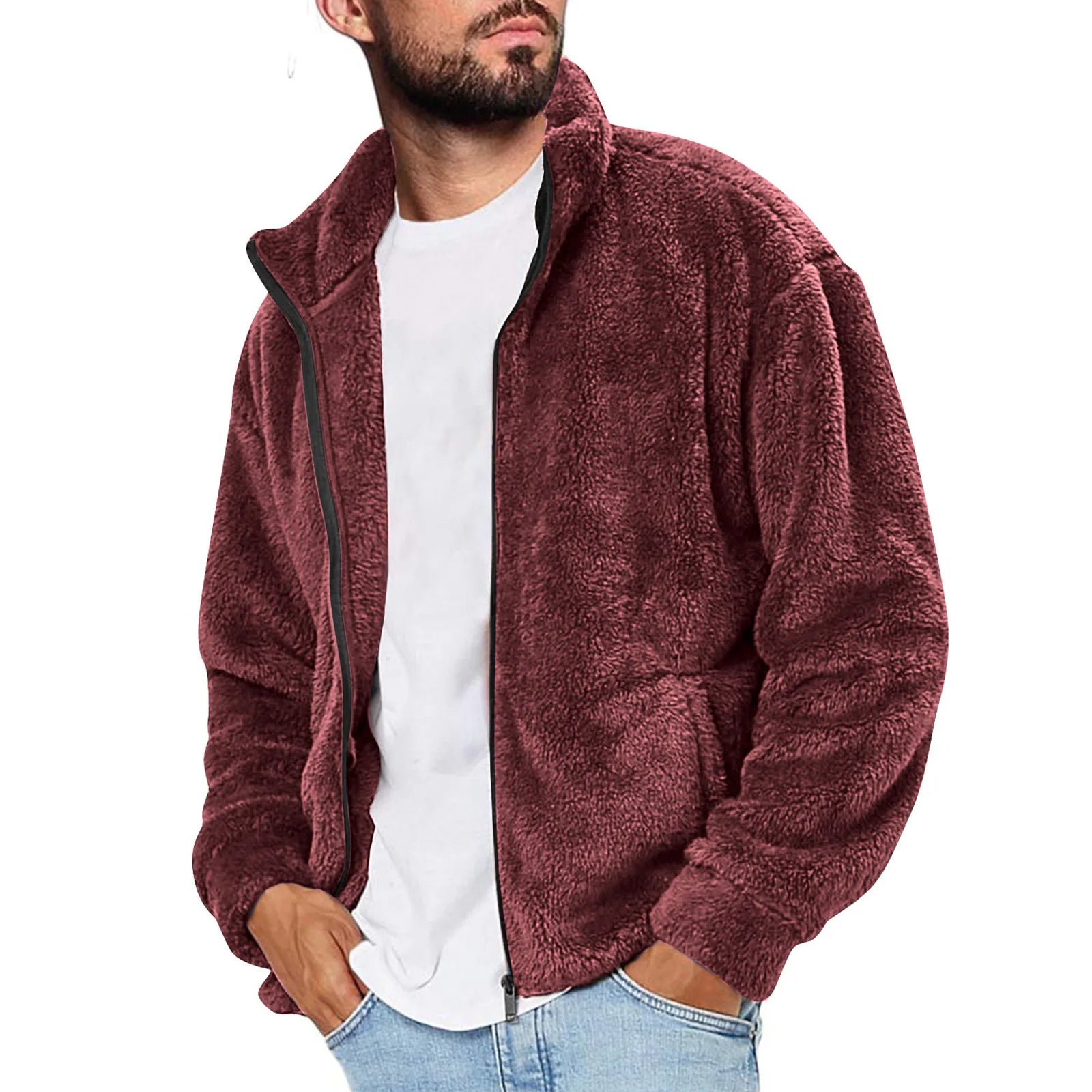 Men’s Fleece Stand Collar Jacket – Warm Full Zip Thermal Coat for Fall Winter