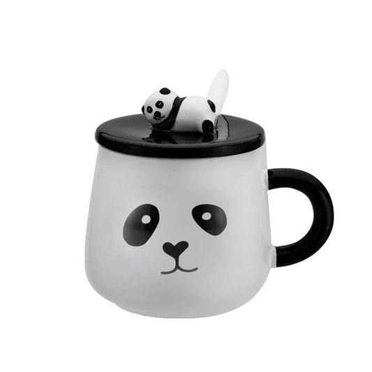 Entzückende handbemalte Panda-Keramiktasse: Hitzebeständig, Deckel und Löffel inklusive – Perfektes Geschenk für Paare