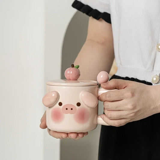 Rosa Keramiktasse mit großem Fassungsvermögen, temperaturbeständig