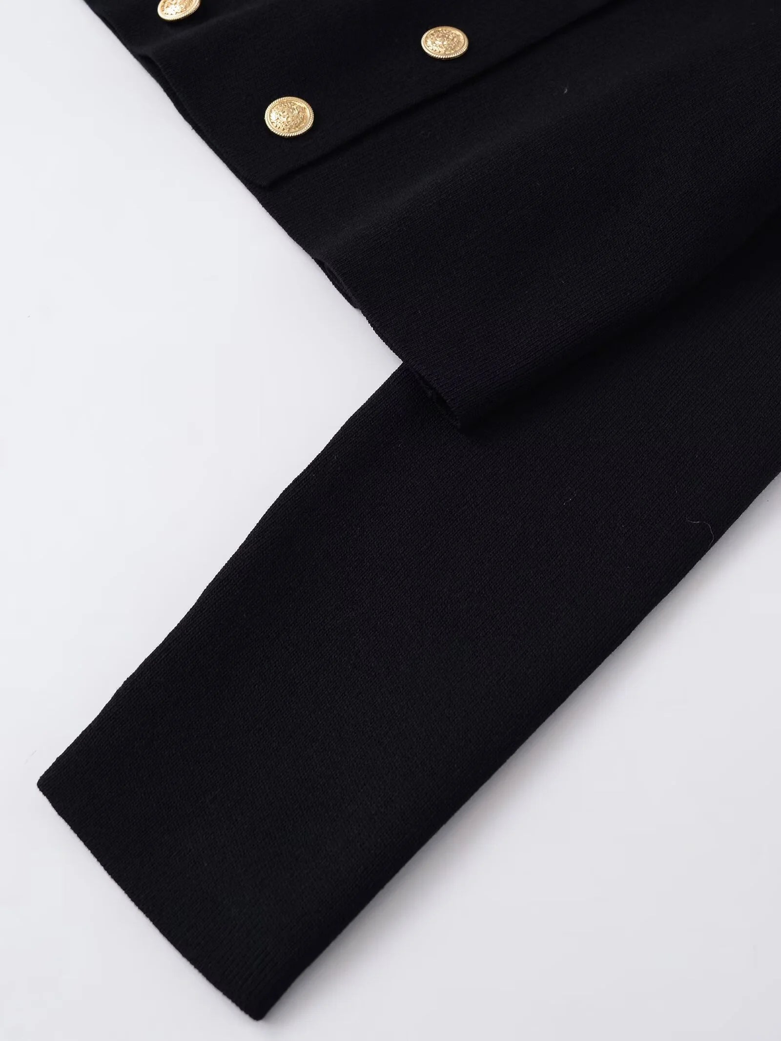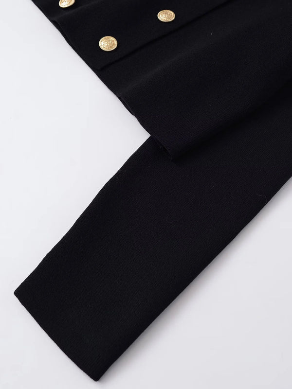 Women's Double Breasted Knit Jacket - Short Casual Blazer