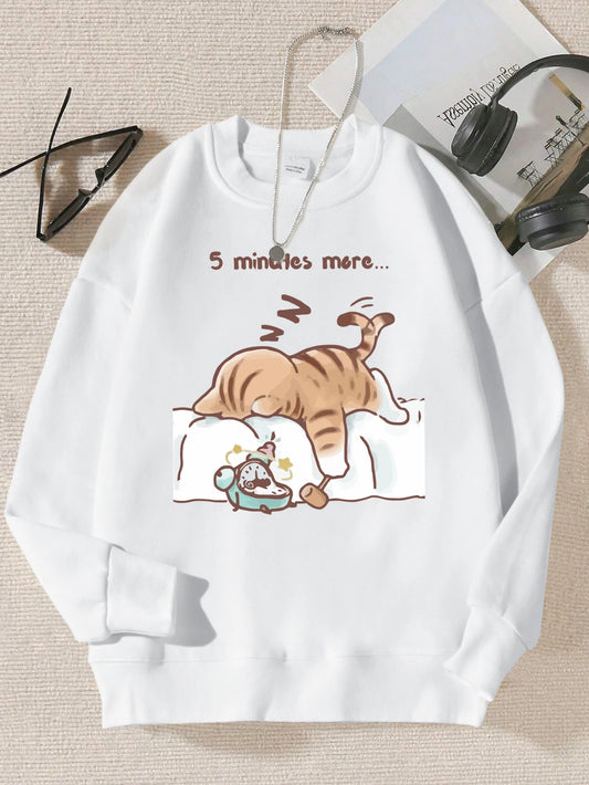 Cat Print Hooded Sweatshirt Women Casual Warm Autumn Pullover