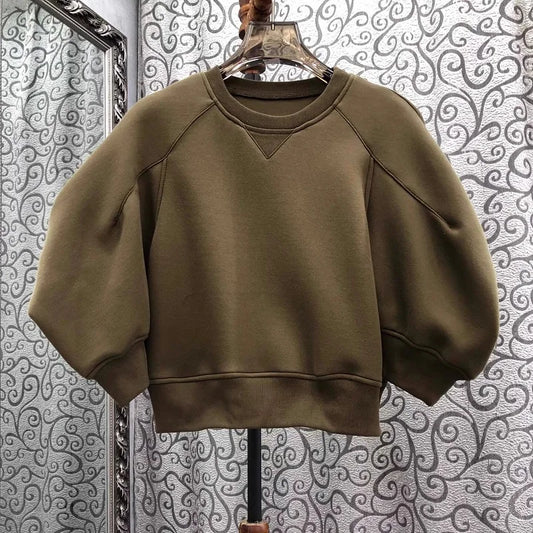 2025 Spring Crop Sweatshirt Women Sleeve Cotton Pullover