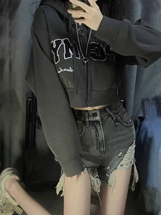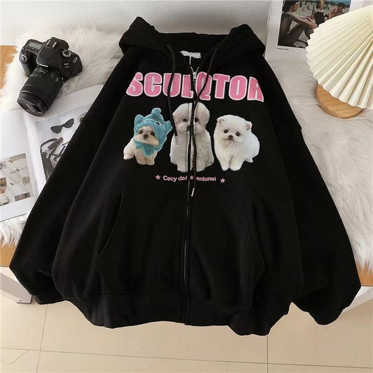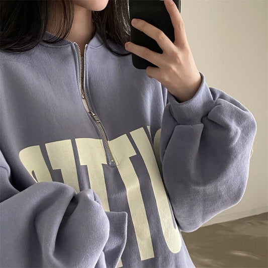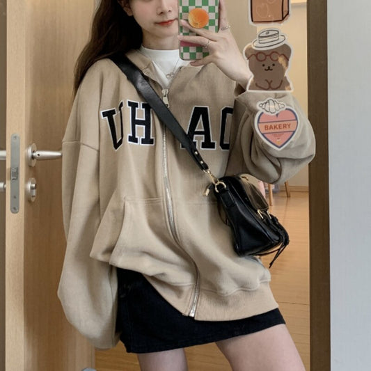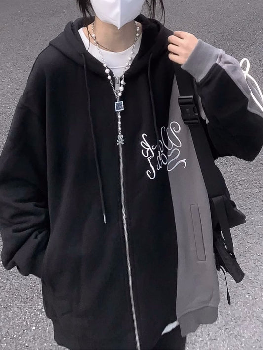 Hoodie Damen Kpop Oversize Zip Sweatshirt Streetwear Casual Vintage