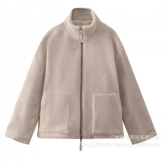 Women's Warm Lamb Fur Biker Jacket Winter Retro