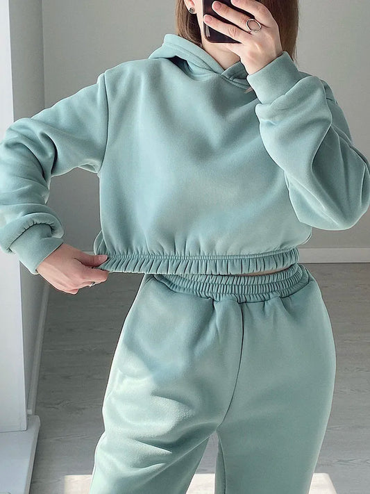 Women’s Fleece Hoodie & Pants Winter Tracksuit
